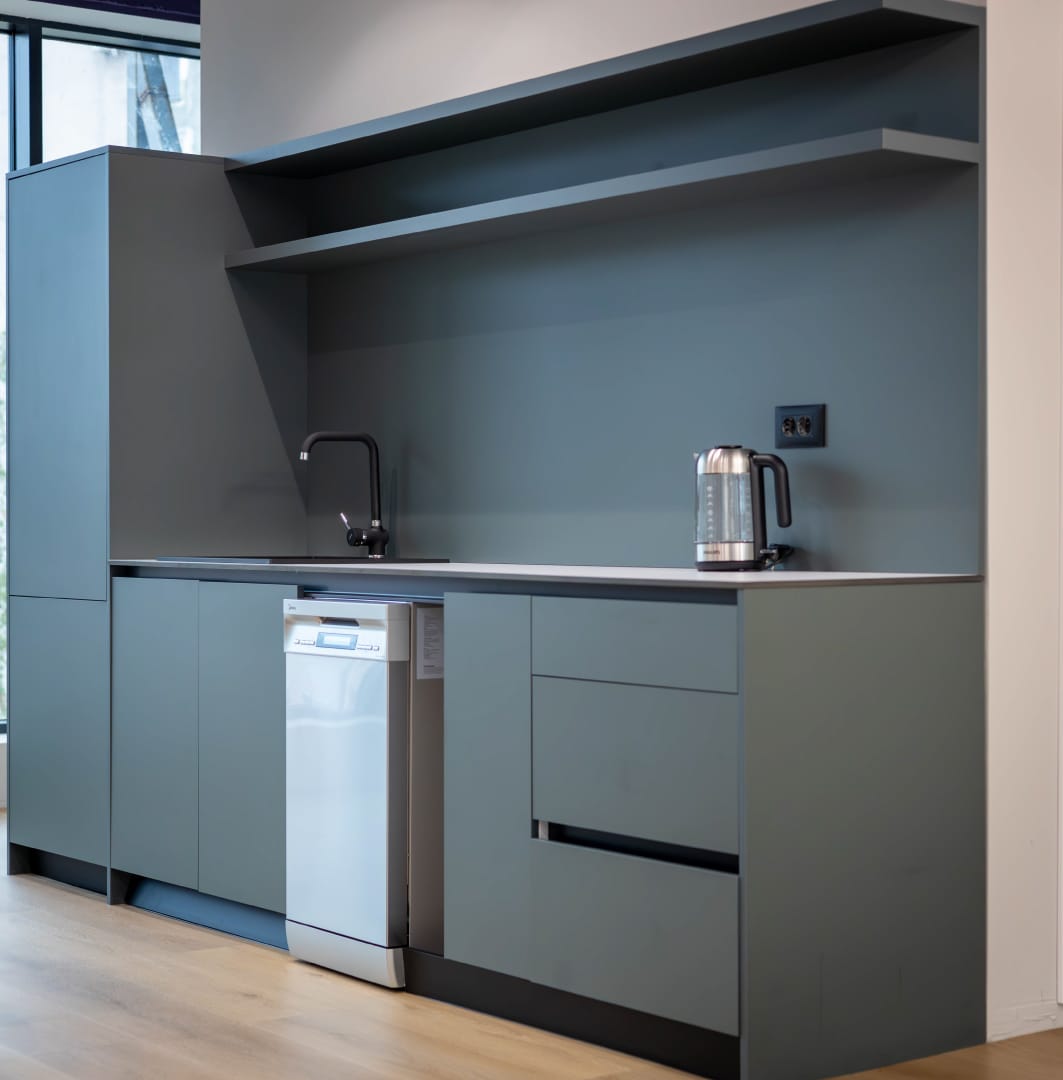 Оперативен простор: Опремен со мебел кој обезбедува флексибилност и комфор за секојдневна работа, со акцент на ергономијата и минималистичкиот визуелен идентитет на брендот.